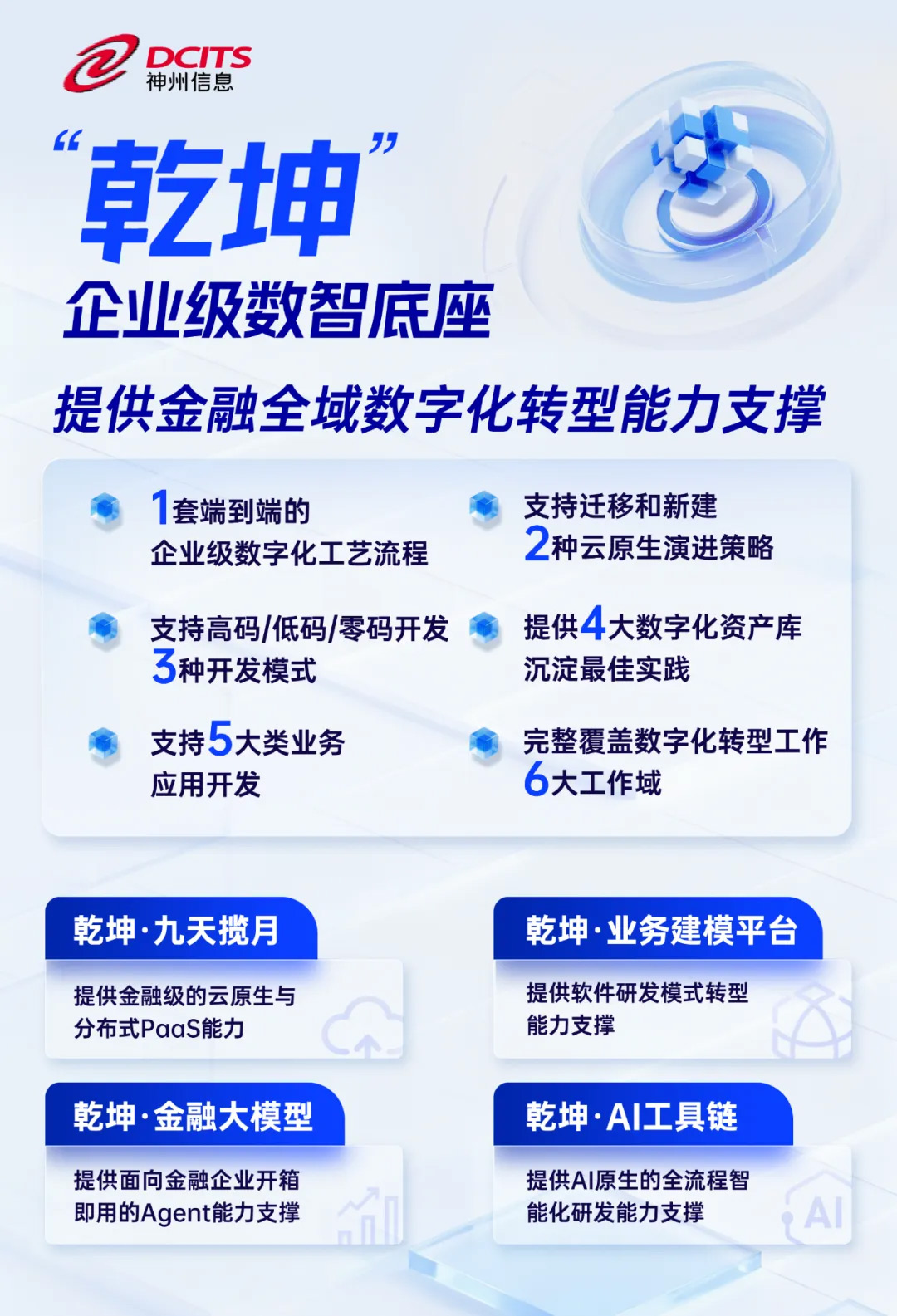 神州信息以“乾坤”企业级数智底座为核心引擎,其集成的金融大模型与AI工具链,将复杂的AI能力封装为银行技术人员可以轻松上手的“乐高积木”。建模工艺平台更彻底打破了“部门级”竖井,实现全行“一套业务模型、一套IT架构、一套实施工艺”,从根本上降低了AI应用的实施门槛与长期运维成本。